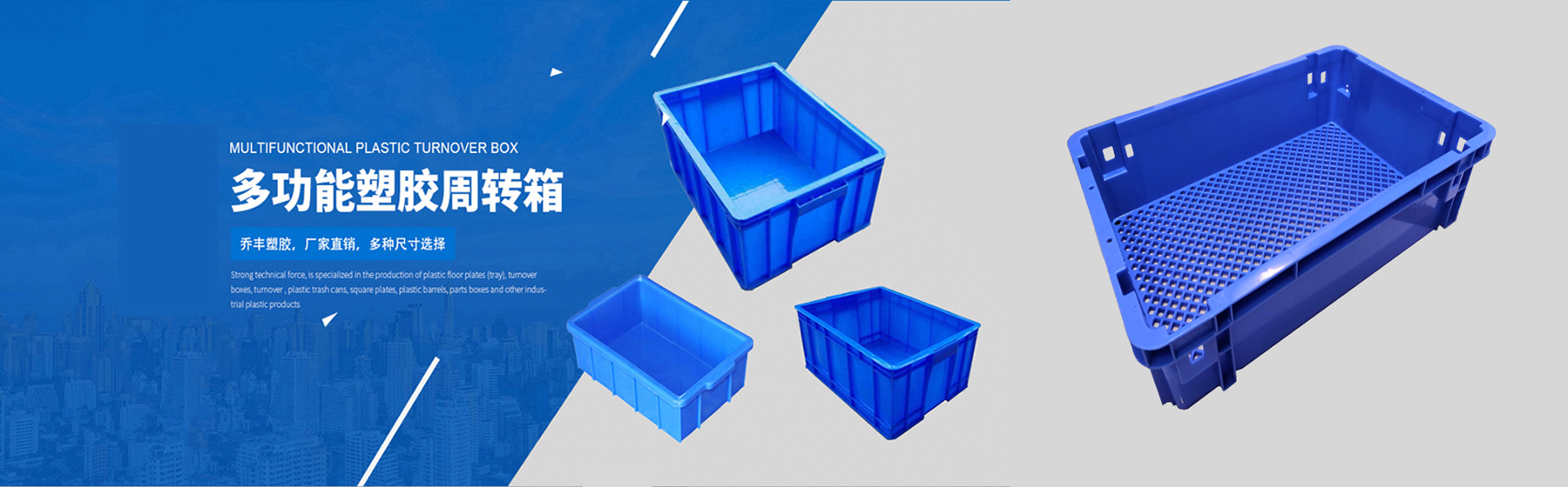 本公司擁有多臺先進的大型注塑成型設(shè)備,技術(shù)力量雄厚,產(chǎn)品豐富多樣,是專業(yè)生產(chǎn)塑料托盤/地臺板、周轉(zhuǎn)箱、食品箱、面包箱、餐具箱、多用箱、斜插式物流箱、套疊箱、周轉(zhuǎn)籮、套疊蘿/錯位筐、煙草筐、防潮墊板、零件盒、多用柜、組合箱、水箱、大白桶、方盆、方凳、EU箱、HP箱等塑料產(chǎn)品的企業(yè)。